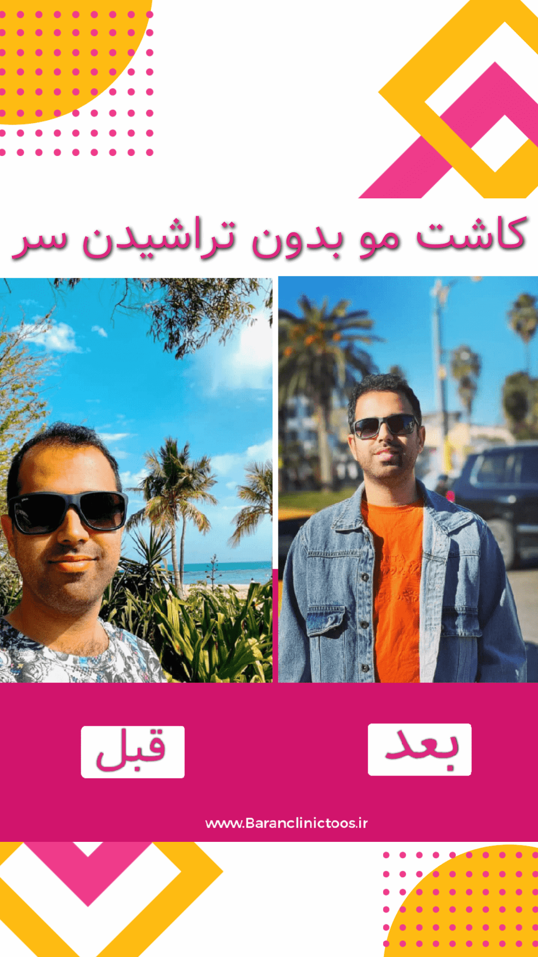 قبل و بعد کاشت مو بدون تراشیدن موی سر در مشهد